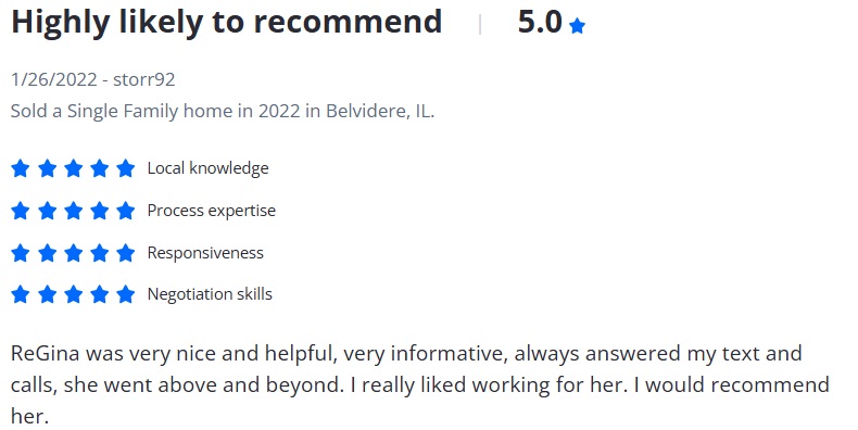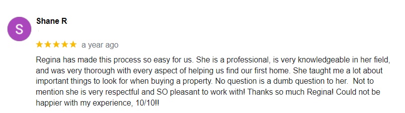 ReGina was very nice and helpful, very informative, always answered my text and calls, she went above and beyond.